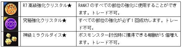 - 対象期間中、ログインした日数に応じて強化系アイテムをプレゼントします。