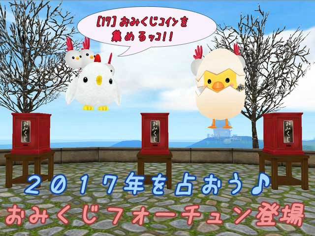 本アップデートでは、一足先に白ひげ鯨村に新年が訪れました。鏡餅や門松、新年を祝した巨大なバルーンなどが登場し、村全体が祝福ムードに包まれております。また、2017年は酉年ということで、酉に関連してニワトリの着用アイテムが続々登場しました。可愛いモーションも多数登場しておりますので、是非アイテムを獲得してお友達と遊んでみて下さい。