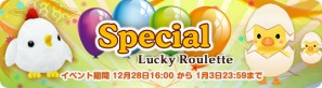ご購入額に応じて挑戦回数が増える、とってもお得なラッキールーレットがスタートします。ラッキールーレットでは、「☆タマゴピヨコ_L(M)」や、ニワトリ型ミルウェイを作れる「コケッコジェット召喚石」などが獲得できます。