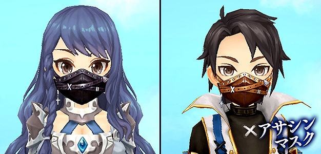 本日実装した新武器・サイズにピッタリの武器アバター「ソウルエンド」が新登場しました。さらに、クールな頭アバター「ヘッドサングラス」と、盗賊コスチュームに良く似合う顔アバター「アサシンマスク」もラインナップしました。ぜひ、自分のスタイルに合わせてアバターを組み合わせ、冒険を存分に楽しみましょう!