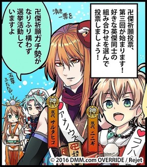 祭事「第三回卍傑祈願投票」と新英傑「ハクリュウ」を紹介する4コマ漫画を公開中!続きはゲームギフトで読むことがきます!