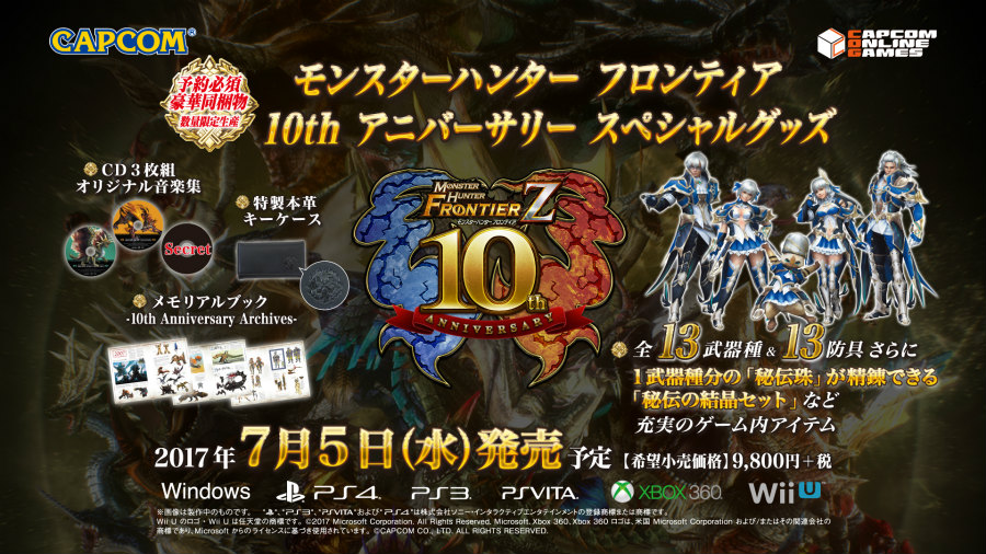 カプコンは、「モンスターハンター フロンティアZ」において、7月5日に「10周年記念大型アップデート」を実施する。