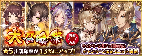・キャンペーンガチャ(※1)は★5ユニット(※2)の出現確率が13%にアップ