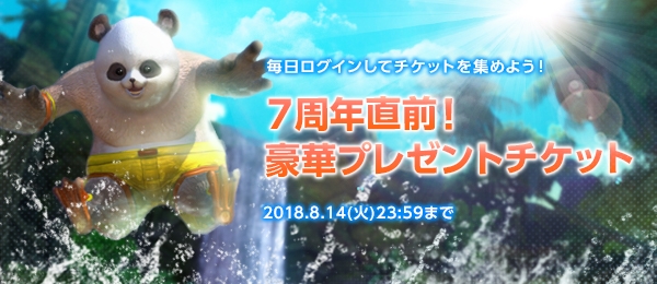 本日2018年8月1日(水)より、ログインイベントを実施いたします。期間中に1日1時間ログインするだけで豪華アイテムと交換できる「7周年直前プレゼントチケット」をもれなくプレゼント!交換できるアイテムには貴重な機能性乗り物「ドラゴン」の期間性アイテムや、プレミアムサービス(3日)などさまざまなラインナップをご用意しております。