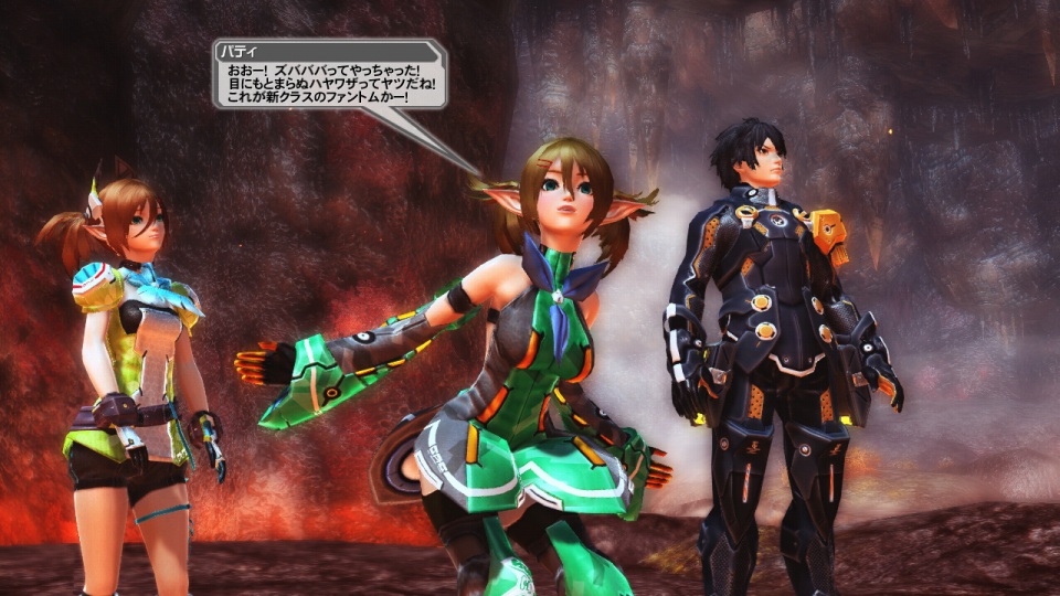 ”詠唱”を唱え、周囲のダーカーを一掃するキョクヤ。そこに、パティエンティアが居合わせる。