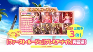 お姫様のようにかわいい女の子9人のSSR水着「ファースト・ルージュ」「プレミア・ナイト」が「なつかしコーデガチャ」で再登場!さらにヴィーナスガチャに比べSSRレアリティの出現確率が約3倍!