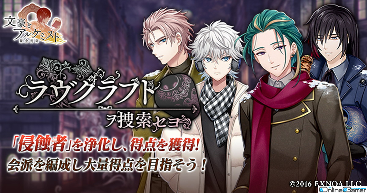 EXNOAは、ブラウザゲーム「文豪とアルケミスト」において、イベント「調査任務『ラヴクラフト ヲ捜索セヨ』」および限定召装「ラヴクラフト ヲ捜索セヨ」、ステップアップ召装「猫ハ虎ノ心ヲ知ラズ」を開始した。