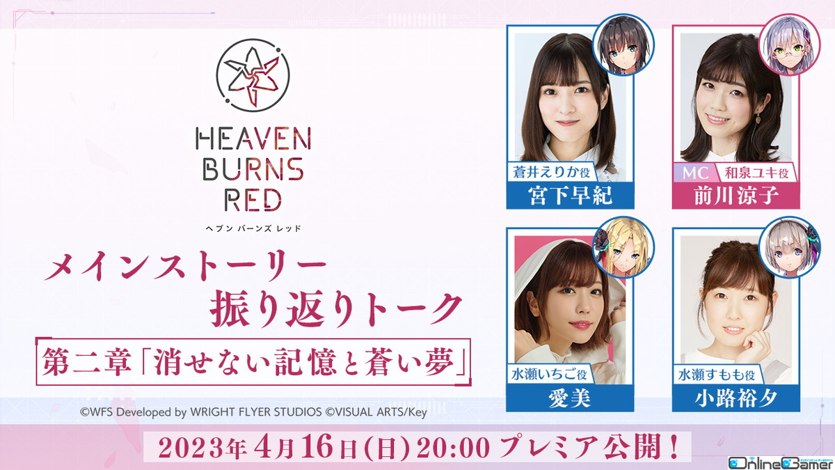 あわせて、出演声優陣による振り返りトーク番組が4月16日20時よりプレミア公開される。メインストーリー第二章「消せない記憶と蒼い夢」の魅力や、収録時のエピソードといった内容が紹介されるとのことなので、お見逃しなく。