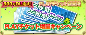 また、ご好評いただいている「300万ダウンロード達成記念キャンペーン」の第3弾となる「PLAYチケット枚数増量キャンペーン」も本日1月20日(火)より開催しております。最大で2倍に増量されるこのチャンスをお見逃し無く!