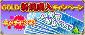このキャンペーンでは、期間中にGOLDを初めて購入した方に「一般卓/上級卓PLAY券(30日間)」を10枚プレゼントしちゃいます!今までGOLDを購入したことが無い方はこのチャンスを是非お見逃しなく!