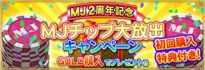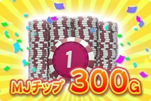 期間中GOLDを300円分以上購入した方に「MJチップ300G」をプレゼント。GOLD購入がはじめての方には、さらに「MJチップ300G」を上乗せして「合計「MJチップ600G」をプレゼント。」